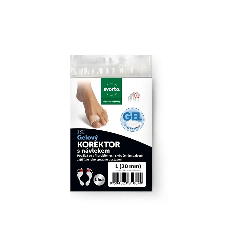 Měkký korektor je fixován ve správné poloze díky pružnému návleku. Zabraňuje tření a odřeninám. Lze navléct buď na palec nebo na druhý prst.